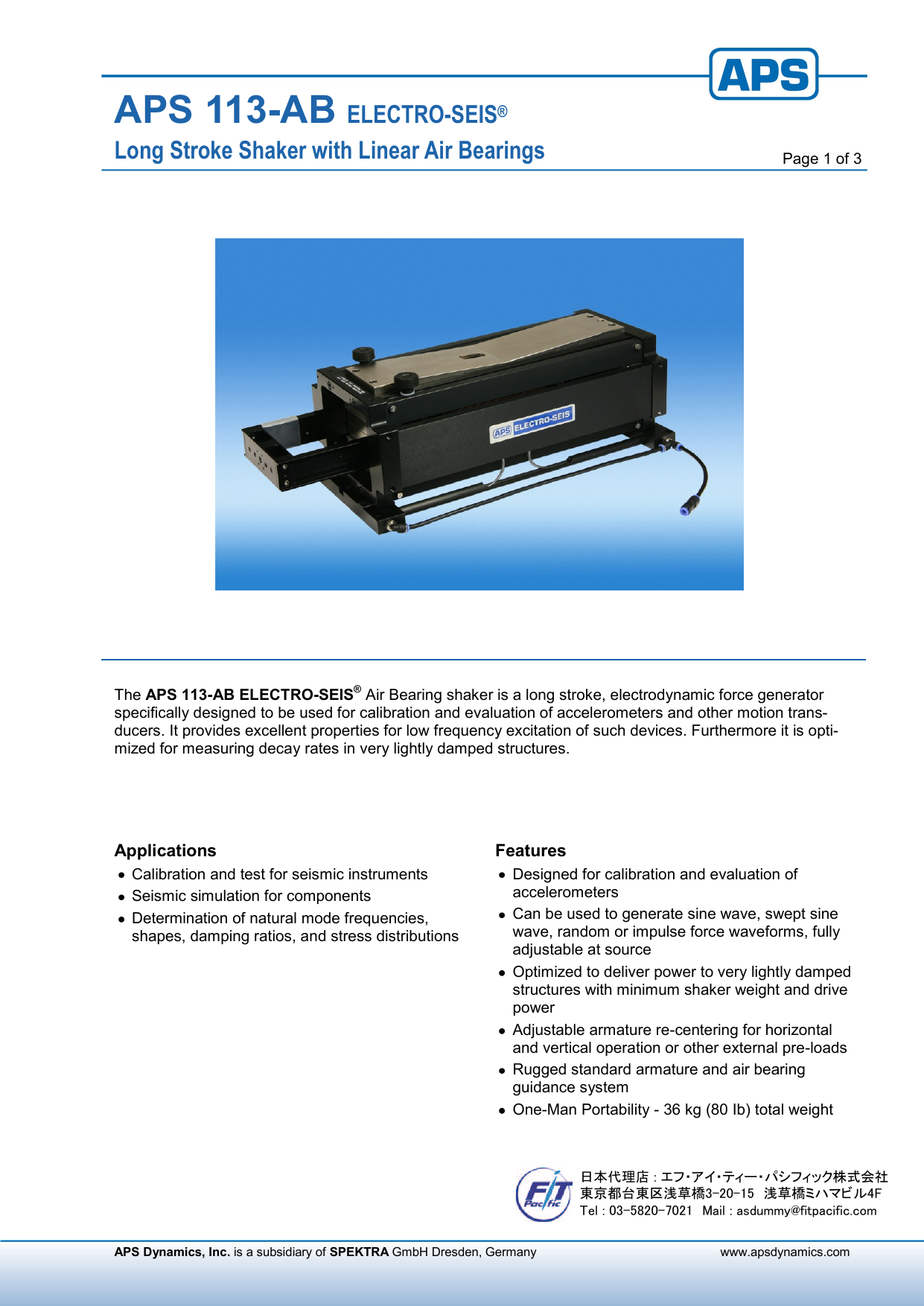 振動・音響センサーの較正装置の専門メーカーであるドイツSPEKTRA社の低周波用加振装置です。APSシリーズは、地震計測等における超低周波での加振と大振幅ストロークが得られ、耐震,制振,免振分野で構造物等の振動解析に必要とされる低周波帯域の加速度計の応答の検証が可能です。