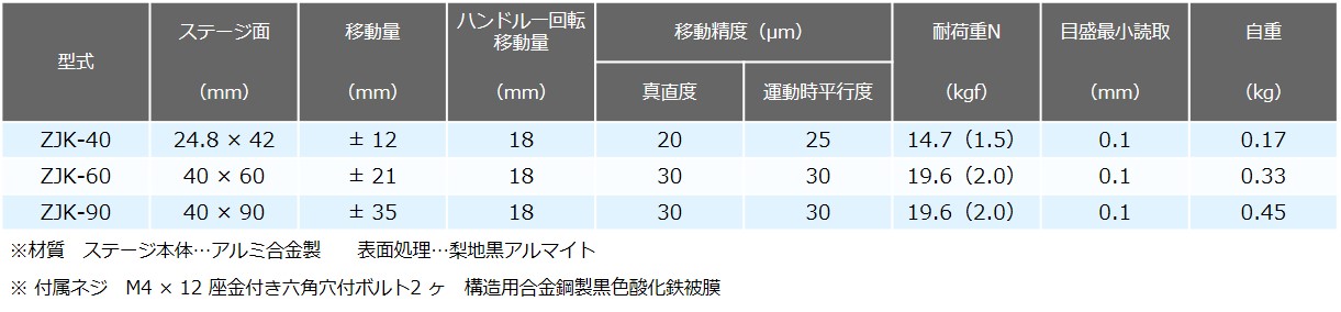 | 主な用途 | アリ溝式ステージは現場作業から装置組み込み用まで、さまざまな位置決めに利用されるスライドユニットです。 |
