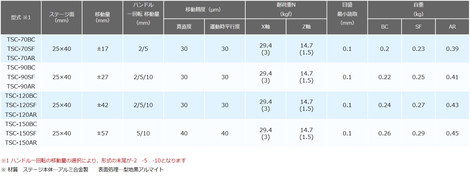 移動距離により4機種をラインナップしています。ハンドル一回転の移動量をそれぞれ2mm・5mm・10mmから使用用途に合わせて選択できる送りねじ式ステージです。視覚的に見やすい中心振り分け式カラー目盛を採用し、その目盛とクランプレバーの左右組み換えが自在な構造で、勝手違いタイプも簡単に自作可能です。特別仕様として、両手ハンドルタイプ・ハンドル延長タイプ・二基並列タイプなどもご提供いたします。さまざまな特長を有した多機能送りねじ式ステージは、長いストロークを規則的なピッチでなめらかに摺動し、狭い空間でも大変便利にご利用いただけます。