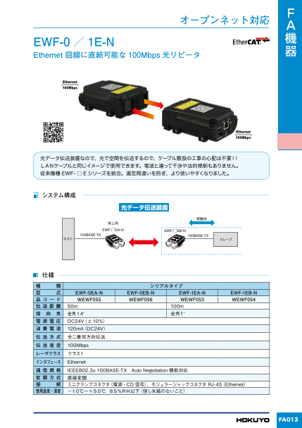 | 伝送距離 | ○EWF-1EA/1EB:100m ○EWF-1EA-01/1EB-01:100m |