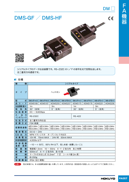 | 形式/品コード品コード【RS-422タイプ】 | ○DMS-GF1A-12:WDMS175 ○DMS-GF1B-12:WDMS176 ○DMS-HF1A-12:WDMS188 ○DMS-HF1B-12:WDMS189 |