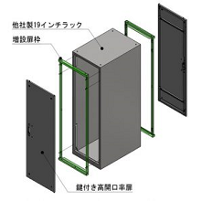 | 主な用途 | ・既設ラックの奥行きを延長し機器搭載のスペースを広げる延長扉枠 ・扉のない19インチラックのセキュリティを確保する増設扉 |