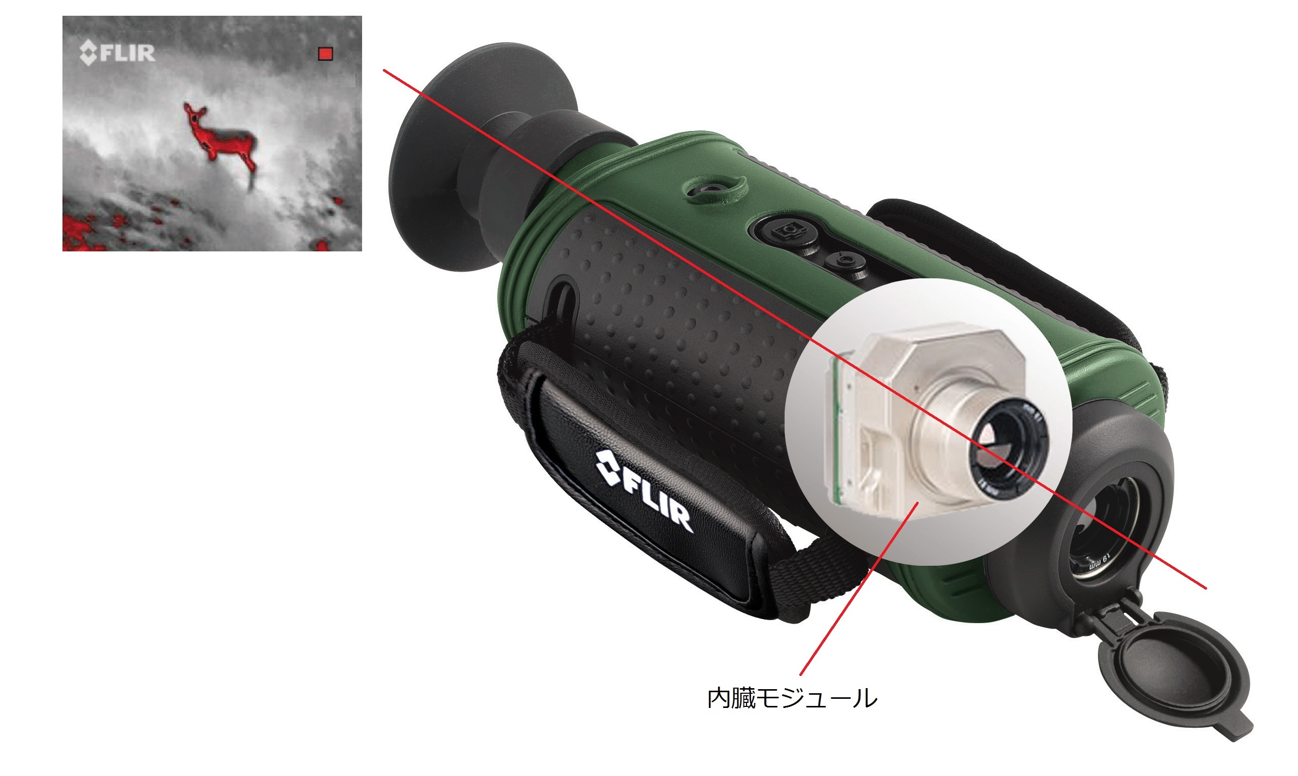 光ではなく熱を検知し、映像化するモジュールが内蔵されている暗視スコープ。
