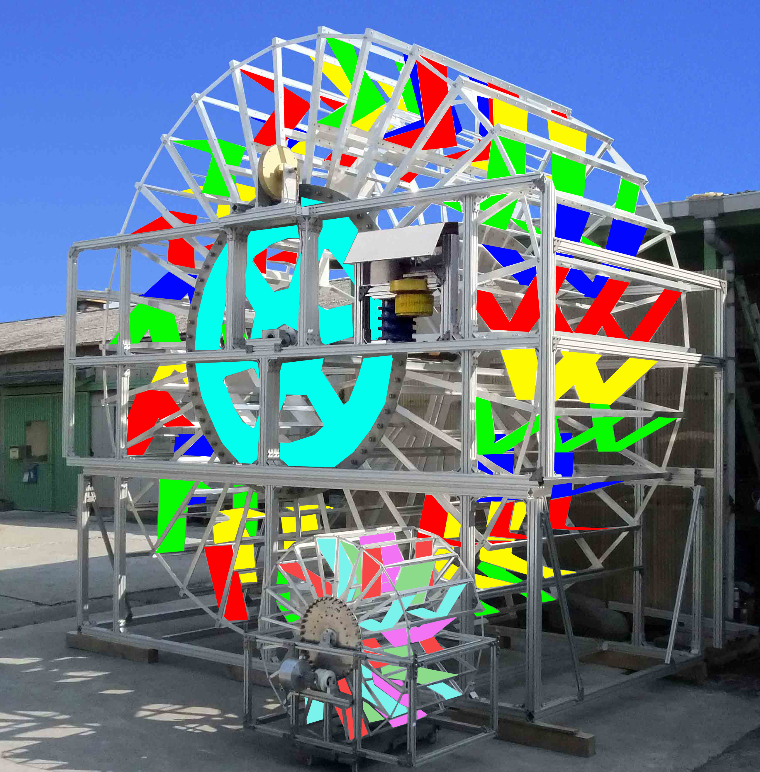 流水利用式マイクロ水力発電システムは、円形や楕円形の水車にスクリュー式増速機と発電機を取付けた構造で、有効活用できていない落差のない既存水路等の流水エネルギーをそのまま利用して水の流れをせき止めずに発電できる。