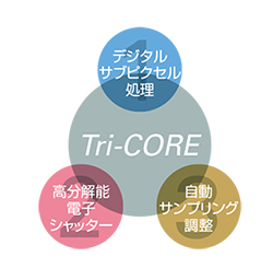 ハイエンド変位センサと同じ高信頼性エンジン“Tri-Core”を、 C-MOSレーザセンサに搭載することで、優れた高精度判別&安定検出能力を実現。