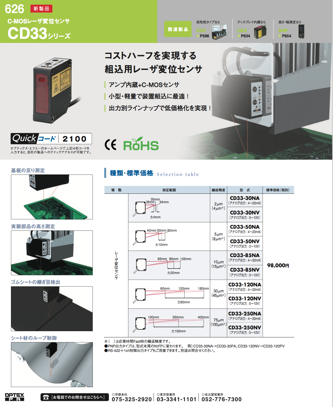 CMOSレーザ変位センサ CD33シリーズのダウンロード (1Mb)