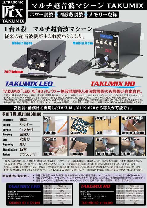 宝飾業界のような繊細なデザインの加工や精密加工の為に開発されたハイパワー超音波ヘラ装置です。