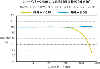 ● FB制御により長期にわたり変動がなくなり、定期的な調光値設定の調整が不要となります。これは測定された発光輝度と、照明に記録された基準輝度を比較し、基準輝度と一致するように出力電圧を微調整します。