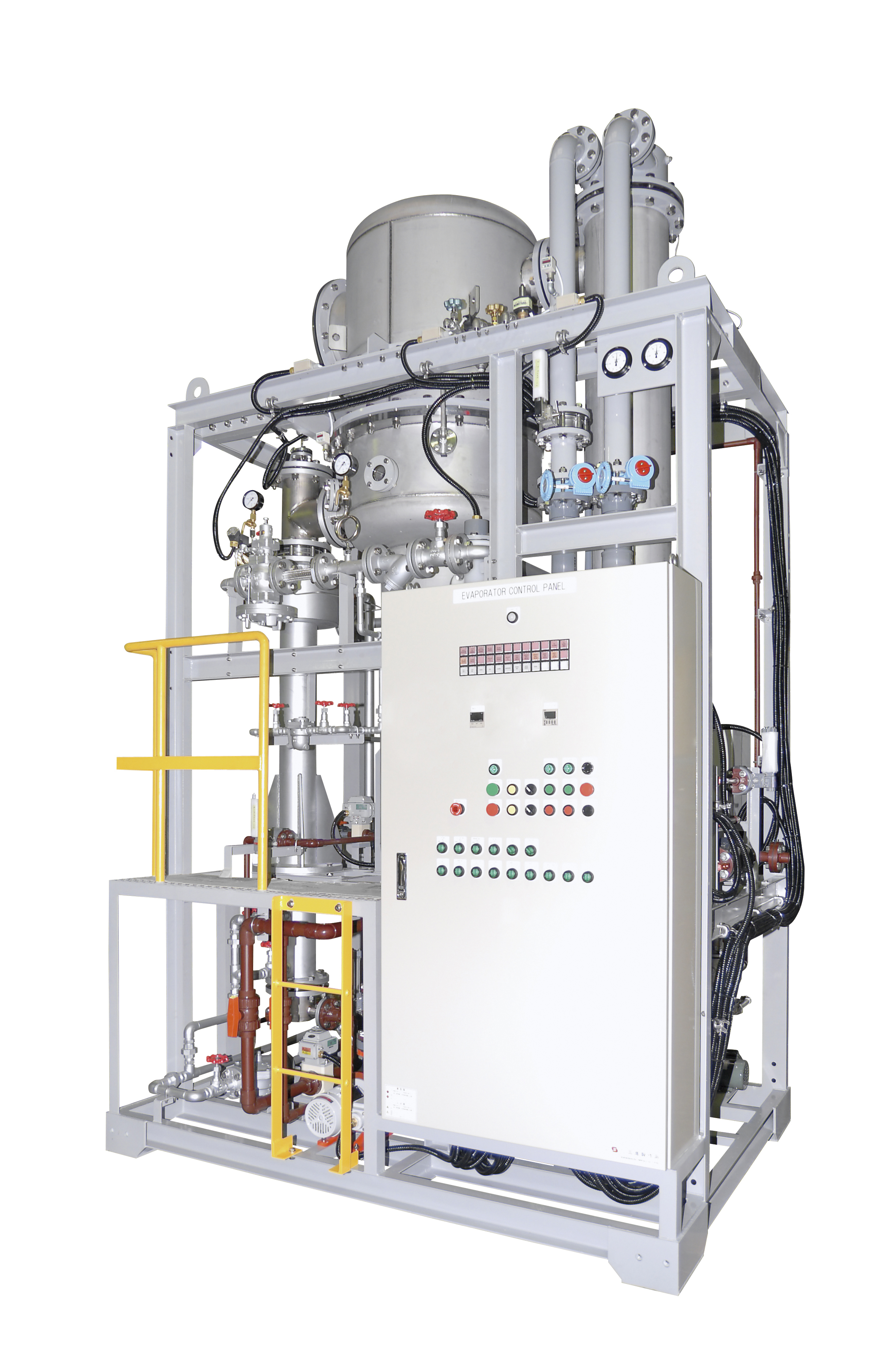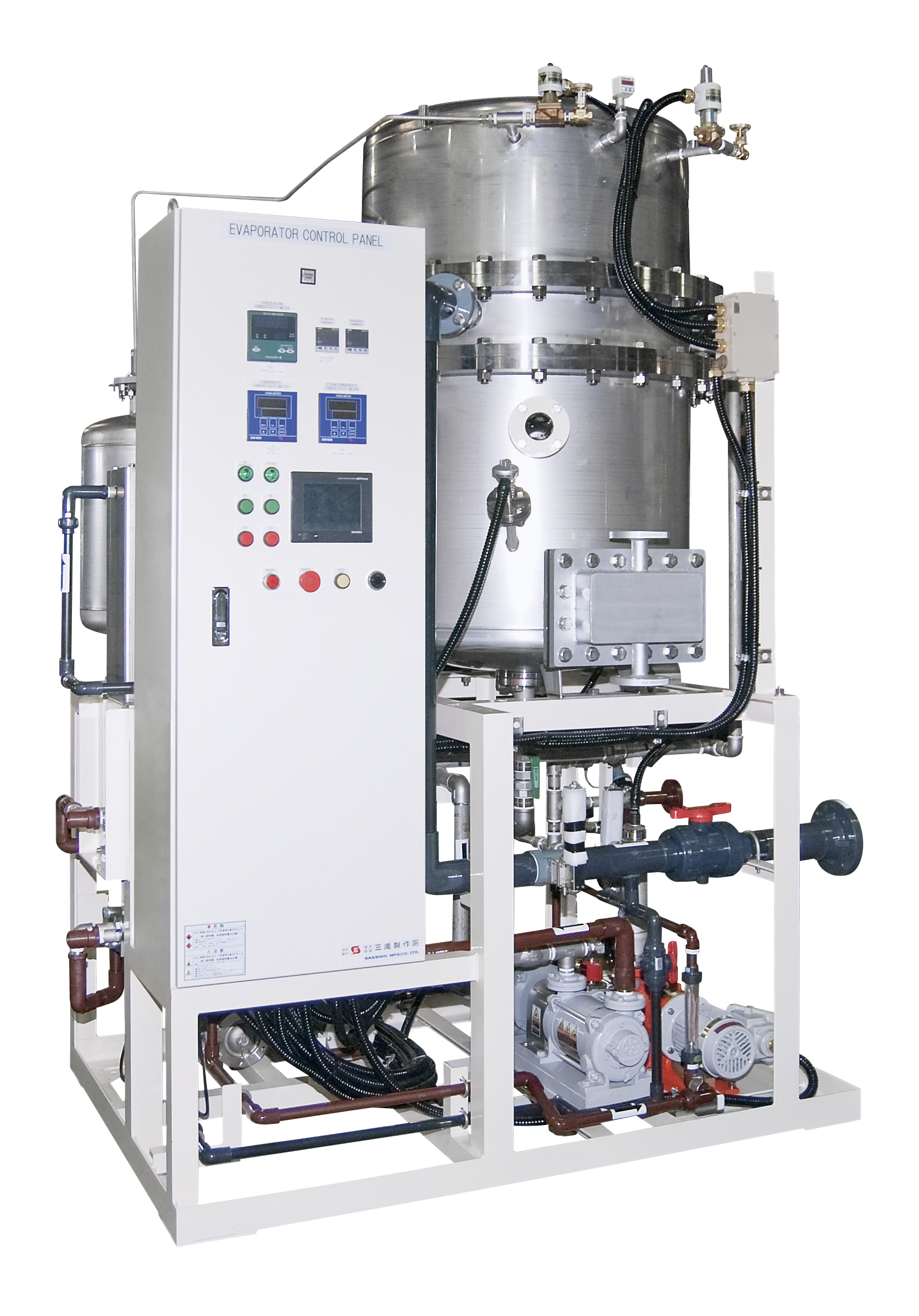 希薄液中の水分を蒸発させ、濃縮・回収すると同時に、蒸発させた水分を復水し、水回収も行う薄膜上昇式真空濃縮装置です。
