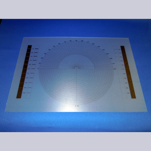 厚みが0.175mmのPETにエマルジョン膜印刷で作る透明なフィルム状のテストチャートで...
