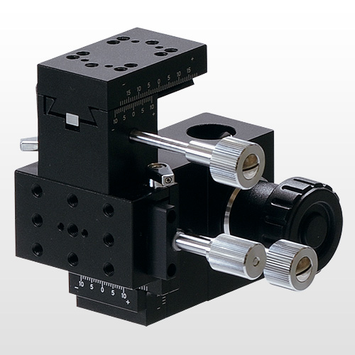 従来品の組み合わせより30%近く薄型で、外観が円盤形状のコンパクトな一体型複合機能ステージです。 X軸・Y軸・回転摺動が可能です。