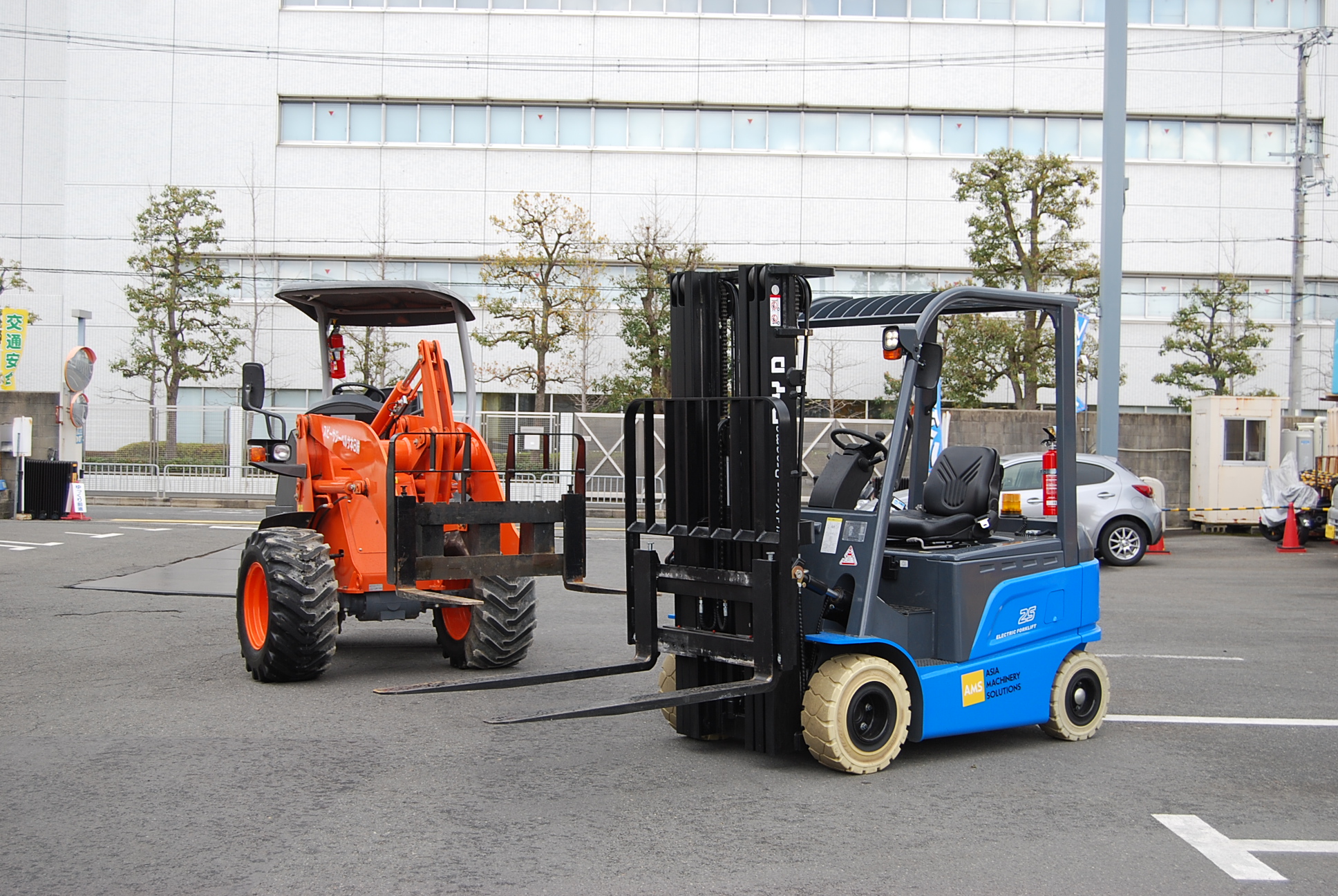 不整地走行に適した、ホイールローダー型のフォークリフト 悪路や傾斜地のような地...