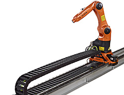 KUKAリニアユニットは並進式の運動ユニットです。作業空間の拡大の際にこれらを投入できますし、複数の機械や装置の取り付け、パレット列のコミッショニング、大きなコンポーネントにおける作業など、ロボットの作業領域でコンポーネントやツールを動かす際にも使用...